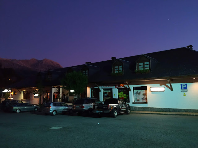 Vamos hasta el embalse de La Sarra, justo encima de Sallent de Gállego y al final del embalse hay un parking, un merendero y un bar. También es una buena zona para dormir, hoy no toca.